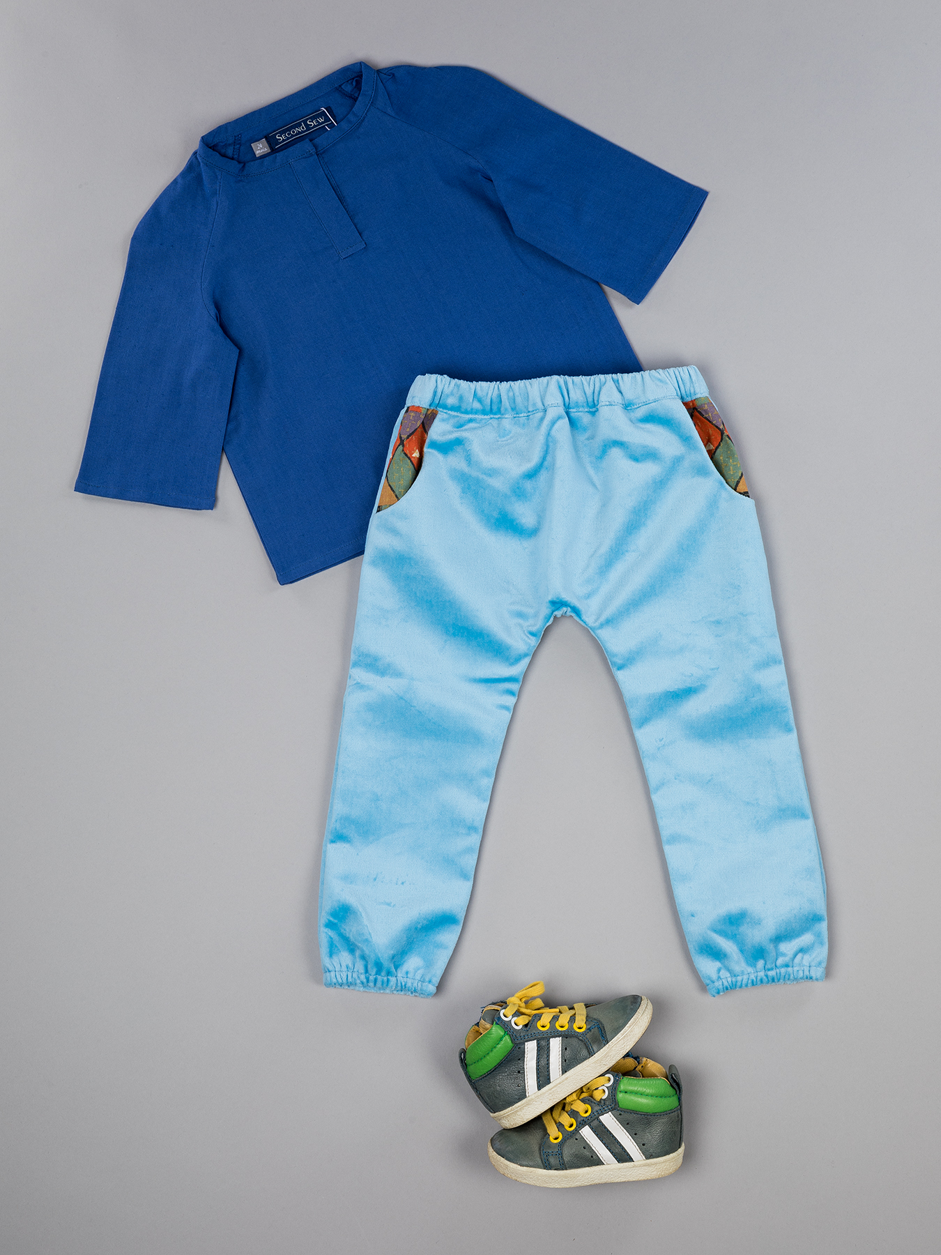 Le pantalon sarouel c'est le souvenir des après-midi entre frères et soeurs / cousins et cousines à courir en forêt à cache-cache, à sauter à pieds joints sur les châteaux de sable.